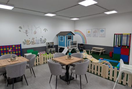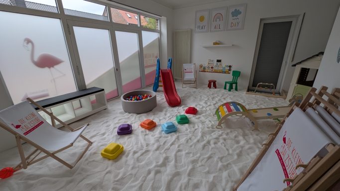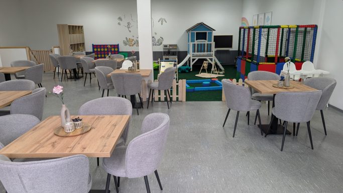 "In unserem Familien Café können die Kinder ausgelassen im großzügigen Spielbereich toben, bauen, spielen , oder einfach zufrieden ihre Zeit verbringen"