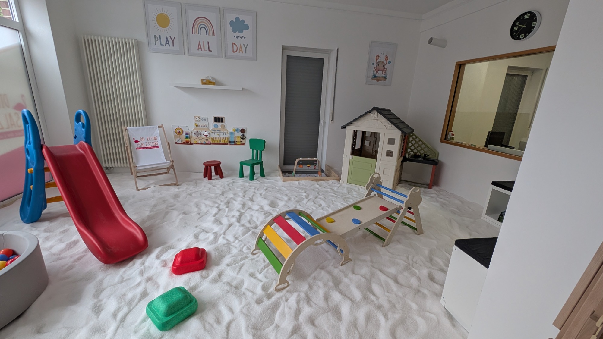 Auch in unserem Salzraum haben wir reichlich Spielzeug für die Kinder. Ein kleines Bällebad, eine Rutsche, Motorikspielzeug, Balancesteine, Salzkastenspielzeug uvm...... Lasst euch überraschen